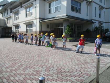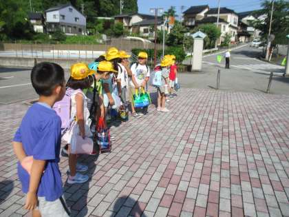 登校後、児童玄関前で、登校してくる子供たちに元気よくあいさつすることができました。