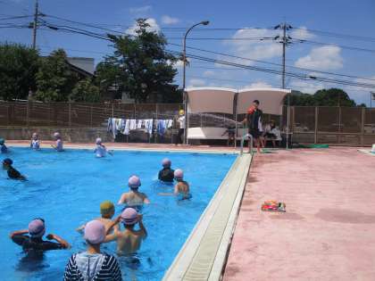 1年ぶりのプール学習。初めは体に水をかけたり、渦をつくったり、水中に隠された石を拾ったり・・・みんなで楽しく活動できました。