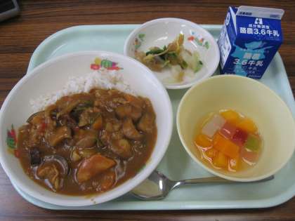 7月11日(火)今日の献立は、麦ごはん・牛乳・夏野菜カレー・福神和え・フルーツカクテルでした。今日は、夏野菜がたくさん届きました。朝から給食室は大忙しです。いつもより多くの食材を切り、調理していただきました。野菜のうまみがたっぷり入ったおいしいカレーの完成です。どの学年もほとんど完食でした。