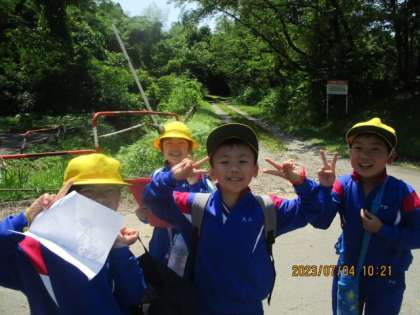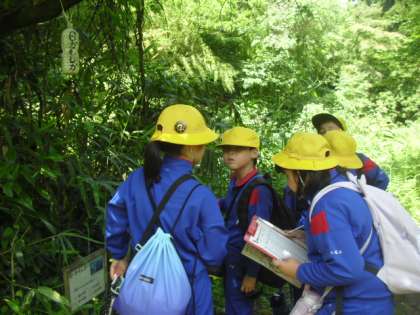 森の動物クイズオリエンテーリングがスタート!地図を見ながら12個のチェックポイントを回り、クイズに答えます。「こっちから行こうよ!」「やっぱりあの道だったんじゃない?」などとグループで話し合い、協力しながら森の中を歩きました。