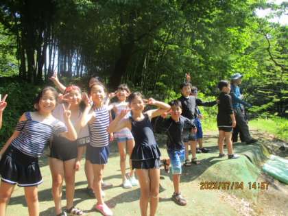心に残ったのは、ターザンロープ。初めは怖いと感じていた子供たちも、友達の姿を見て自分も頑張ろうと奮い立ったり、周りの友達の声援が励みになってやってみようとしたりすることができました。自然の中で仲間の存在に感謝するとともに、できた喜びや満足感が得られる活動となりました。