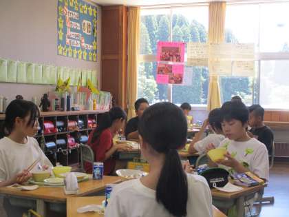 6年生 久しぶりのグループ給食