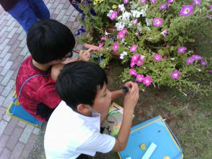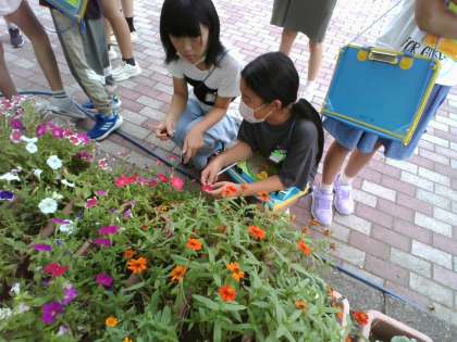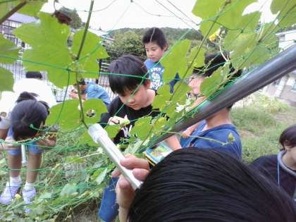 理科では、花のつくりを観察しました。おばなとめばなのつくりを実際にルーペを使って観察しました。