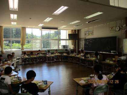 子供たちからは、「みんなの顔を見て給食を食べたい」「みんなで楽しく給食を食べたい」と意見がありました。また、「大きな声でなく、声量も考えようね」「みんなの顔を見て給食を食べるために、机の移動もテキパキやろうね」との声もありました。