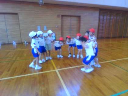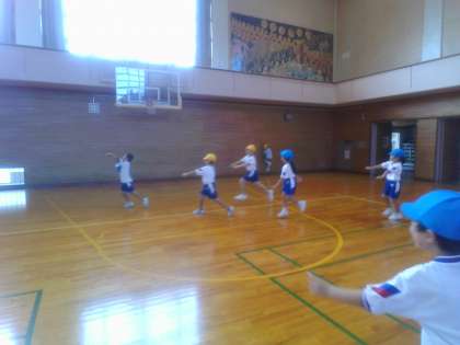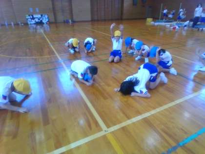 「ひょうげんあそび」の学習では、動物になりきって動き、ぴったりの動きを見つけています。馬の群れになってみんなで走ったり、体をつなげてジンベエザメを表現したりして楽しみました。