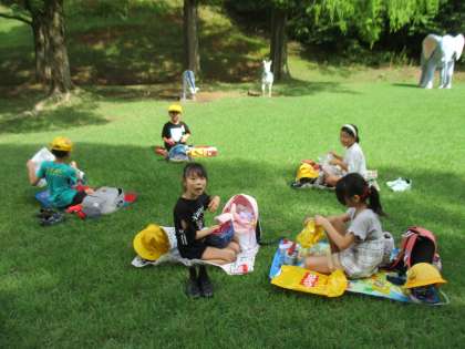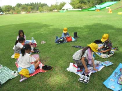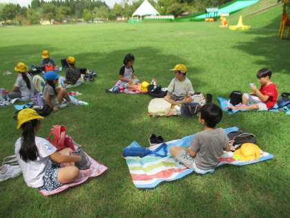 ピクニック広場に到着後、子供たちが待ちに待ったお弁当タイム。
