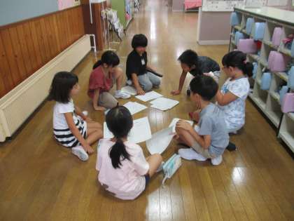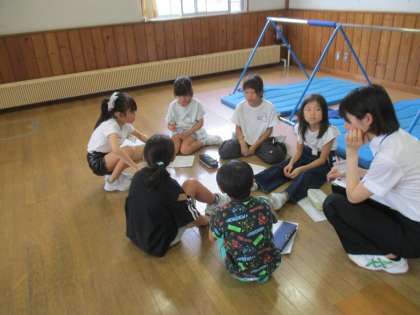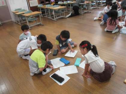 訪問先が同じ子供たちでグループをつくり、インタビューする順番や内容を相談、確認して、活動に臨みました。