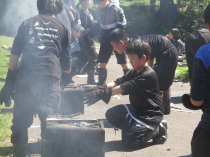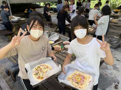 2日目の活動はピザ作りです。生地作り、トッピングの材料切り、焼くためのかまどの準備。昨日の活動で意識し始めた協力する姿を発揮する絶好の機会となりました。それぞれの役割を果たしながら、美味しいピザになるよう頑張りました。
