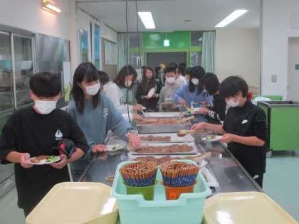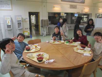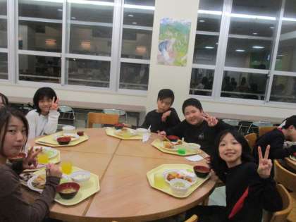 自然の家での夕食はバイキングでした。班の仲間と楽しいひとときを過ごしました。