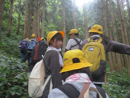 来拝山登山では、励まし合いながら急所を登りました。「一歩一歩、慎重に〜!」「ファイト!」など、仲間を応援する素敵な姿が見られました。登頂後は、雨天となりましたが、足元に気を付けながら下山しました。所の方が「お帰り〜!」と出迎えてくださり、「ただいま〜!」と元気に返す6年生の姿に頼もしさを感じました。