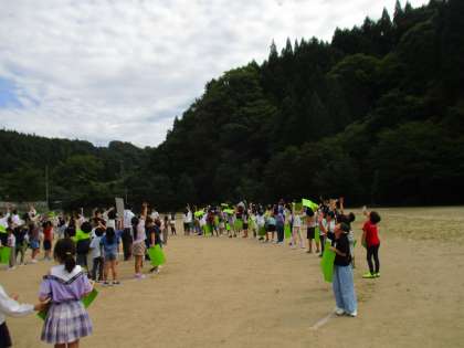 撮影中は、掲げた色画用紙を動かすことができず、「手が痛い…」「まだ終わらないの…」と言いながらも一生懸命に我慢した子供たちですが、撮影終了後、去っていく飛行機に向かって元気よく手を振っていました。