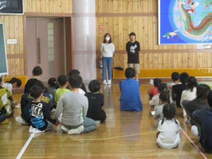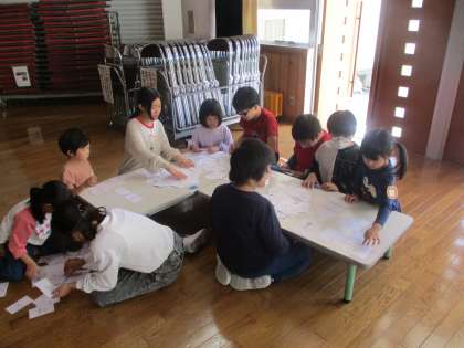3時間目に八尾保育所の子供たちと 交流しました。事前に考えていた四つの遊びで楽しみました。