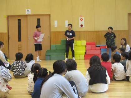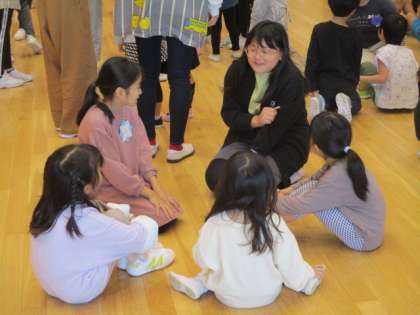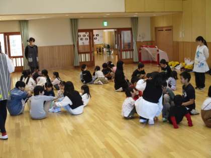 保育所の子供たちとしりとりをしたり、手を繋いで一緒にクイズに挑戦したりしました。