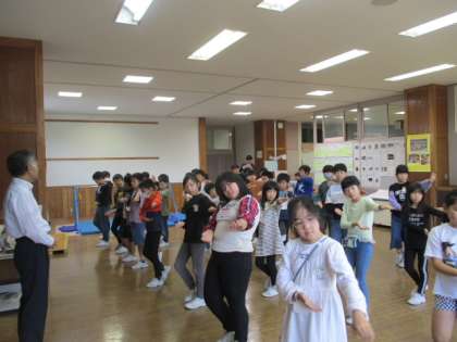 今週は、学習発表会に向けて、朝活動におわらの練習をしています。4年生なので宙返りや稲刈りなどの所作を入れて踊りたいということになり、練習を始めました。合い言葉を覚え、その意味を知り、上手に踊るポイントを確認しながら練習しました。少しずつ揃ってきて、踊りも美しくなってきました。