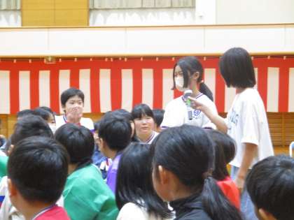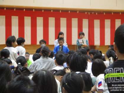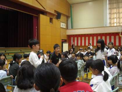校内発表会の終わりに、他の学年の発表を見て思ったことを伝えました。全校のみんなの前で手を挙げられる勇気、立派ですね。