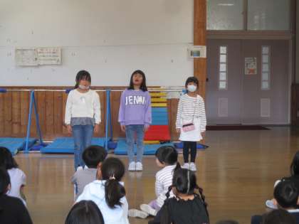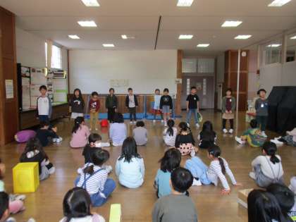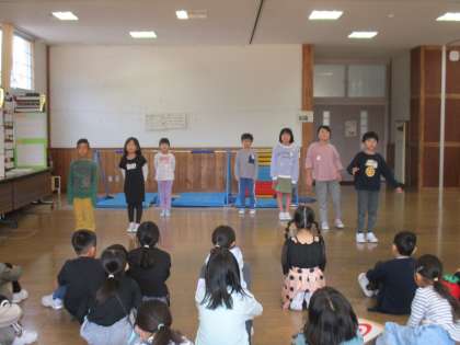先日の校内発表会から、一層意欲を高めて練習に取り組んだ2年生の子供たち。今日は、前日最後の練習として、お互いのグループの発表を見合う活動を行いました。