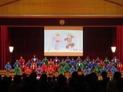 本番は、とても緊張した様子でしたが、発表を終え教室に戻ると、「町の人に八尾町のキラリを伝えられてよかった」「台詞を間違えたけれど、最後まで言えてほっとした」など様々な声が聞こえ、成長した子供の姿が見られてとても嬉しく思いました。