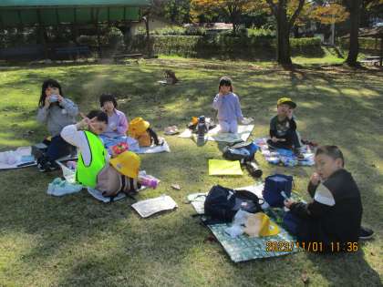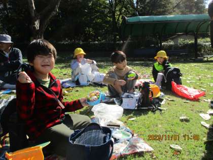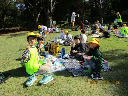 グループ活動では仲良く活動できたようです。たくさん歩いてお腹が減った子供たち。お弁当を食べて元気いっぱいになりました。ご準備、ありがとうございました。