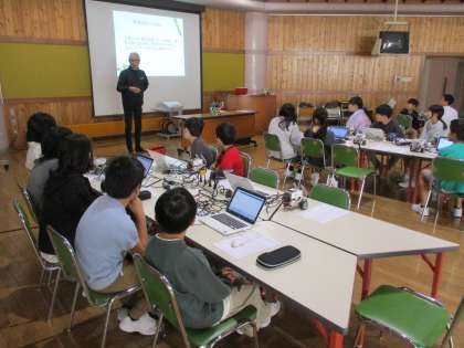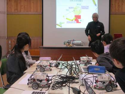 11月1日、2日の2日間、プログラミング教室が行われました。始めに、ロボットの仕組みについて教わりました。実際にロボットがルービックキューブの6面を揃えるのを見て興味津々の子供たちでした。