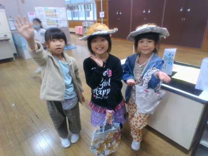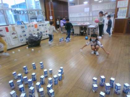 秋のおもちゃづくりや牛乳パックを使った工作をしています。どんぐりを使ったネックレスを作ったり、どんぐりのタイヤの車を作ったり、思い思いに活動しています。作っては遊んで、遊んでは作って、楽しい時間を過ごしています。