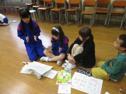 今日の音楽科では、前回一人一人つくったリズムを使って、友達とのおまつりに合うリズムをつくりました。自分たちのイメージするおまつりに合うように、くり返しの部分や速さ、かけ声について友達と話し合いながらおまつりの音楽を作りました。
