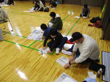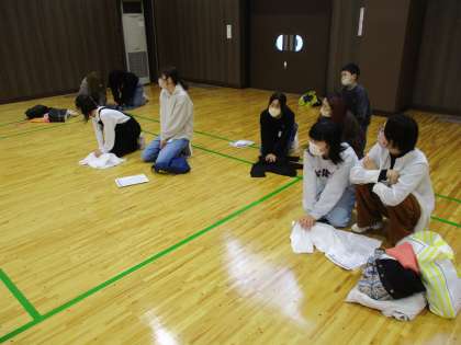 5年生の学年PTA活動は、救命講習を行いました。心臓マッサージやAEDの使い方、地震で足下にガラス等が散乱しているときに使える新聞紙スリッパの作り方を教えていただきました。