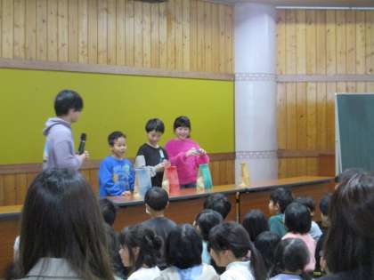 3年生は科学マジックショーを実施していただきました。子供たちは興味津々でした。