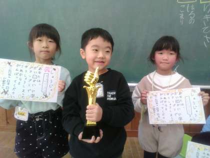 係の子供たちが中心となって活動しました。自学グランプリでは、漢字の練習を見合いました。「めあてとふりかえりも書いてあるね」と、ぴかぴかノートを探す子供たちでした。自学グランプリの後は、音読コンテストです。「じどう車くらべ」を暗記して音読する子供たちでした。日頃の頑張りをみんなに見てもらうチャンスです。次回もがんばりましょう。
