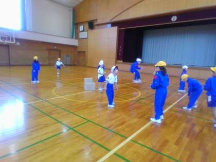 ボール投げゲームの学習をしています。最後には、トーナメント戦で試合をしました。作戦会議をして、フェイントをかけたり、下の箱を狙ったり、いろいろな作戦を立てて実践していました。「負けたけど、楽しかったよ」「箱を全部崩すことができて嬉しかったよ」と話す子供たちでした。