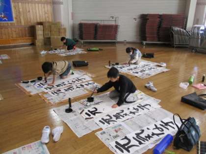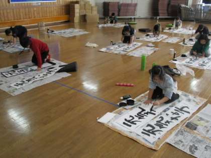 今日は、4年生になって初めて書き初めの練習をしました。昨年度の経験を思い出しながら、書き初めの準備をしました。今年の字は、「元気な子」です。一画一画、手本を見ながら、線の長さ、向き、交わり方等に気を付けて丁寧に書いていました。