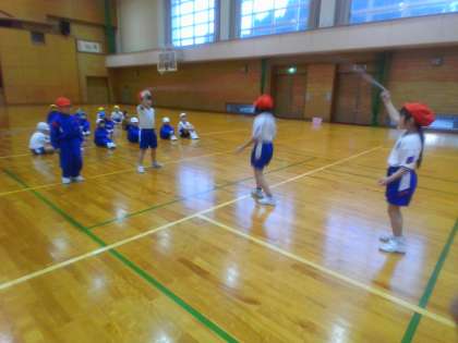 なわとびリレーをしました。八の字跳びも練習しています。休み時間にも練習に励む子供たちです。