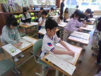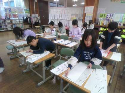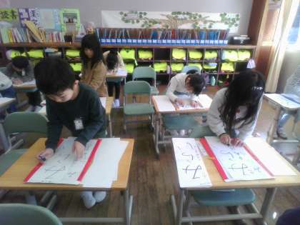 書き初めの練習に励んでいます。「前より真ん中に大きく書けるようになったよ」「かたつむりの速さでゆっくり書いたよ」と話す子供たちでした。めきめきと上達しています。書き初め大会が楽しみですね。