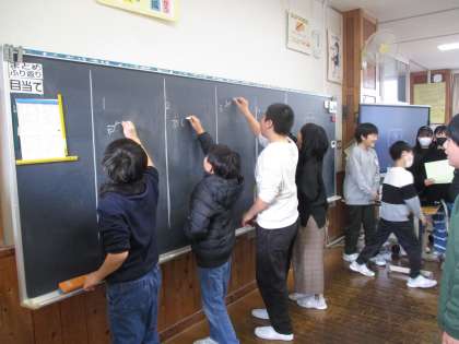 今日は学級でお楽しみ会をしました。子供たちが出し物ごとに役割を分担し、準備を進めてきました。たくさん質問があっても丁寧に答えていました。友達と笑い合う姿が見られて、先生にとっても思い出に残る楽しい会になりました。