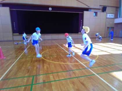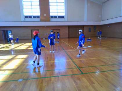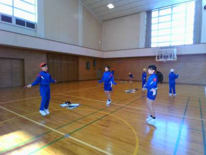 体育の時間に縄跳びに挑戦しました。一回でも多く跳べるように友達と競いました。