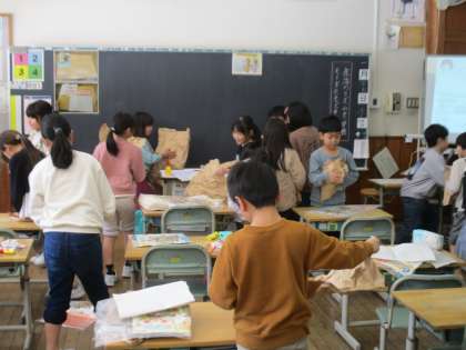 図工 「くしゃくしゃぎゅっ」作成開始 (2年生)その3