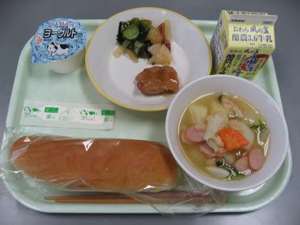 今日は、ヨーグルトのお話をしました。給食のヨーグルトは、富山県産の牛乳を使って製造されています。ヨーグルトは、牛乳と同様に、カルシウムも多く含まれています。お腹の働きを整えたり、免疫力を高めたり、美肌にも良いそうです。毎日の食事に積極的に取り入れたいですね。今日もおいしくいただきました。