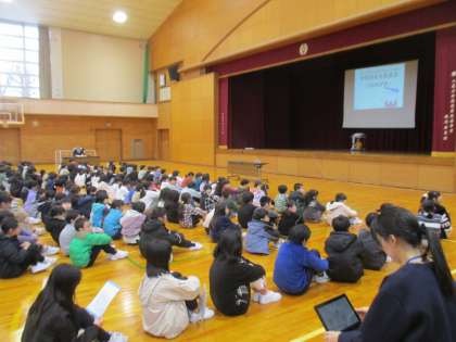 昨年度まではコロナ渦中ということから、全校で集まって発表やお話を聞くことができませんでしたが、今年度は久しぶりに全校集会の形をとることができました。