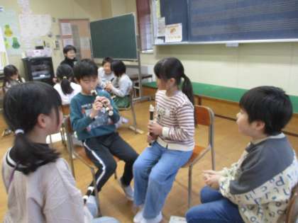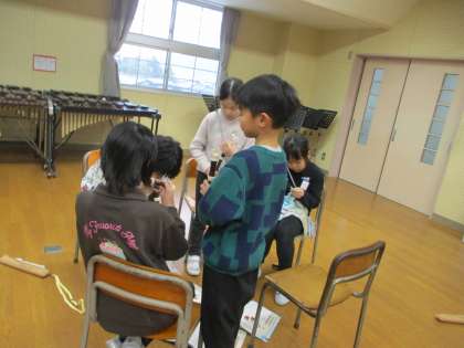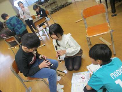 今日は「グループのみんなが演奏できるようになる」ことを目標として、教え合いながら練習を行いました。指づかいを教える姿や、きれいな音を出すポイントを教える姿がありました。
