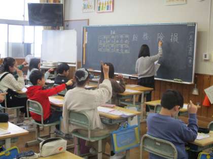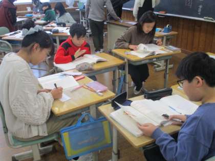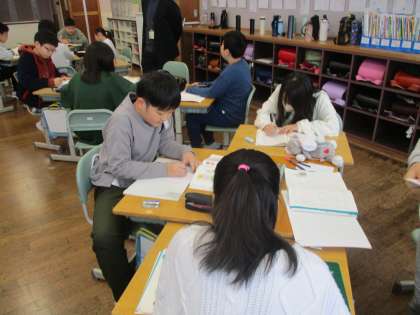 1時間目は国語です。新出漢字を一緒に学んだり、複合語を教科書から見つけたりしました。