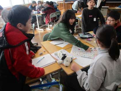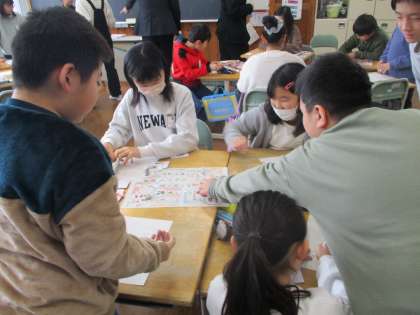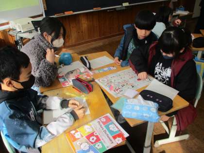 2時間目は外国語です。グループですごろくを進めながら外国語に触れました。