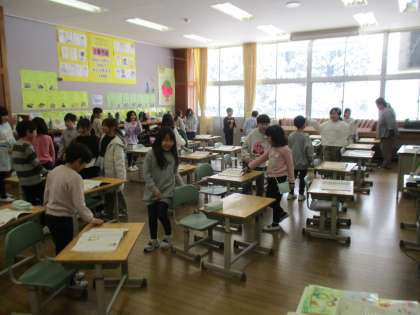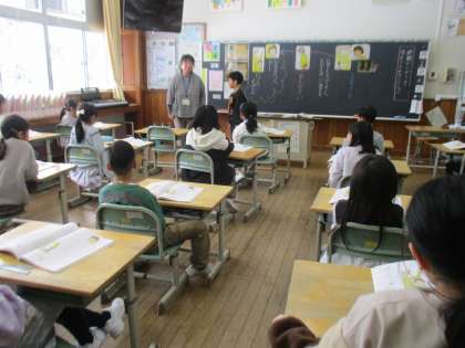(授業開始直後は、少し緊張気味だった竹組の子供たちですが、後半では完全にいつもの状態で、みんなで、当たり前のように学習活動に取り組むことができていました)