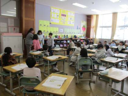 今日の道徳では、樫尾小学校の先生に指名されて発表する際、返事の後に「2年竹組の○○です。」と、しっかり自分の名前を名乗ってから意見を発表する様子が見られました。