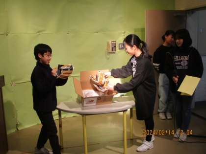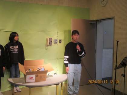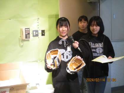 大谷翔平選手から寄贈されたグローブが届きました。そこで、テレビ放送で代表児童によるお披露目会をしました。大谷選手からのメッセージを読んで伝え、これから大切に使っていこうと呼びかけました。