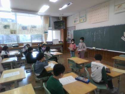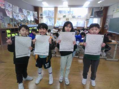 運動係では、ラダーのレッスンやおにごっこ、ドッジボールを企画しました。給食係では、食材や栄養のクイズラリーをしました。算数係では、点つなぎ競争をしました。教室のカレンダーを見て、次は何をしようかなと楽しみにしている子供たちです。