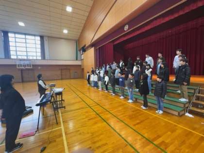 外部講師による卒業式の歌練習も、今回で最後です。体を動かしながら歌ったりソロに挑戦したりと今回も内容が盛りだくさんでした。