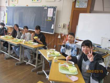 給食はもちろん完食!! 下校前に調理員さんへの感謝の挨拶をして、学校を後にしました。