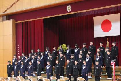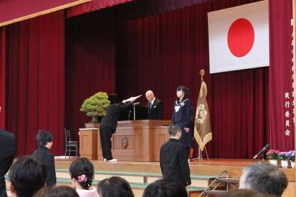 卒業生44名は、一人一人しっかりと校長先生から卒業証書を受け取っていました。「門出の言葉」では、これまでの感謝の気持ちを伝えようと、精一杯言葉を述べたり、「大切なもの」を歌ったりしていました。