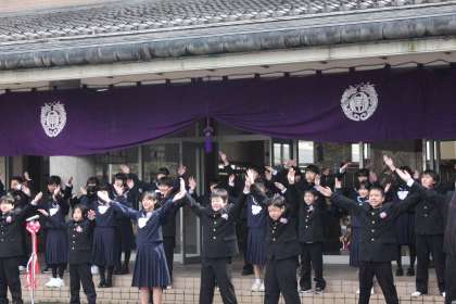 卒業式を終え、学び舎を離れる離校式を竜の子ロードで行いました。