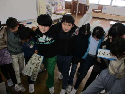 最後はみんなで円陣を組み、「最強3年竹組!4年生になっても頑張るぞ」と掛け声をかけました。