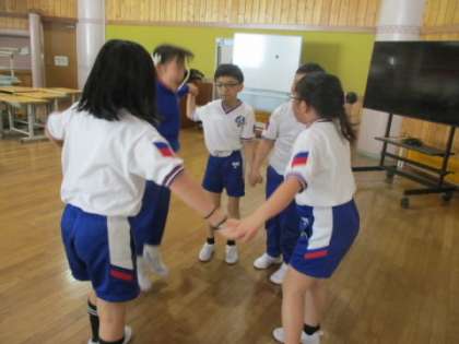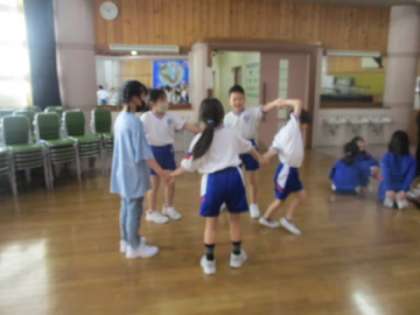 3年生みんなで、男女の交じった5,6人のグループを作り、自己紹介をし合いました。始めはぎこちなくてかたい表情の子供もいましたが、だんだん笑顔になってきました。気がつくとグループみんなで手をつないで輪になって楽しそうに回ったり、かごめかごめをしたりしていました。クラス替え等で、ちょっと不安になっているかもしれませんが、これからどんどん、友達の輪が広がっていくといいですね。